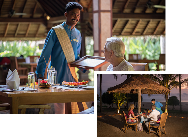 Nourish your body, mind and soul through authentic and delicious food, the charm of our staff and the Ayurvedic practices for which Kerala is renowned: massage, meditation and yoga.